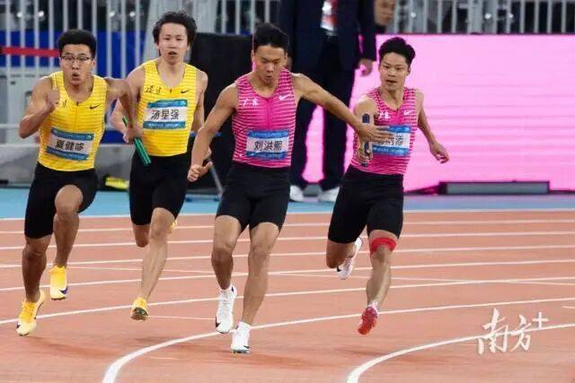 在十五运会男子4×100米接力决赛中,苏炳添(右一)完成了他在赛场上的最后一跑。 南方+记者 梁钜聪 摄