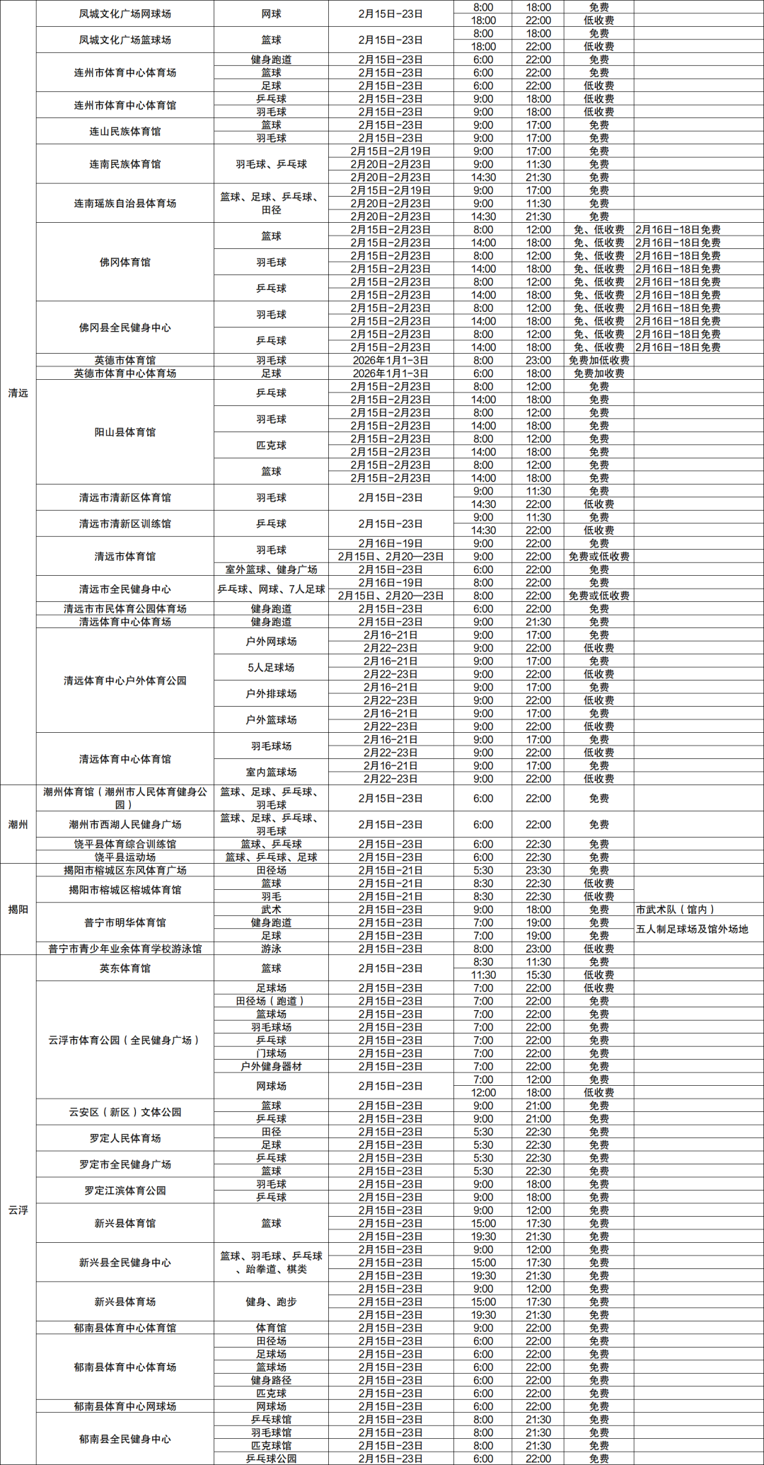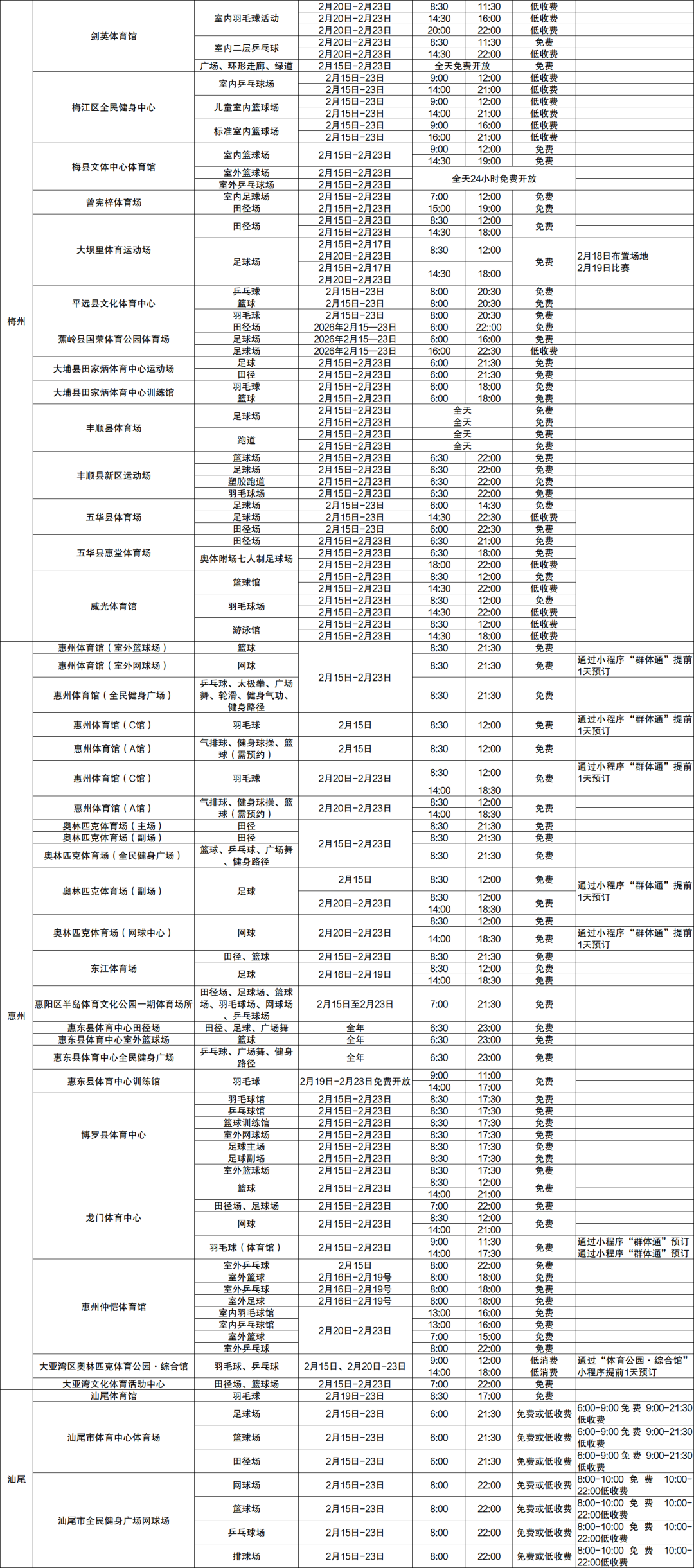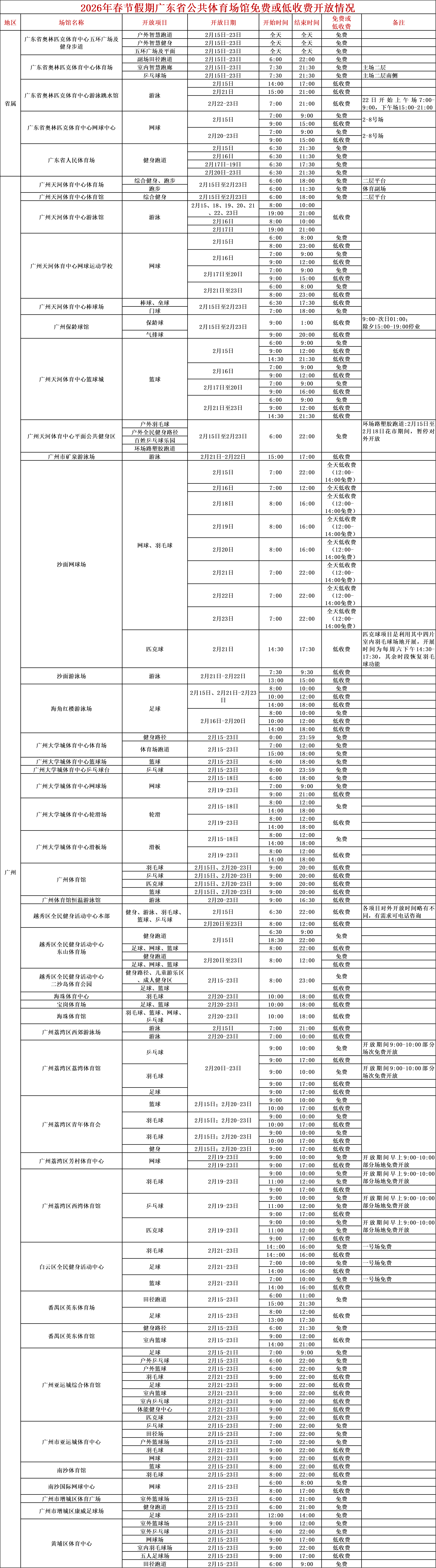 春节临近,为切实丰富全省群众春节假期生活,让大家度过一个健康充实、充满活力的新春佳节,广东各地积极部署,推出公共体育场馆惠民便民举措,全省280家公共体育场馆将实行免费或低收费开放政策,持续完善全民健身公共服务保障体系,积极传递健康文明、积极向上的节日生活理念,让惠民福利走进千家万户。