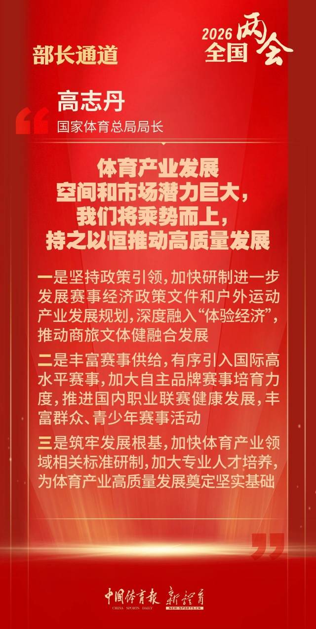 3月9日,十四届全国人大四次会议“部长通道”上,国家体育总局局长高志丹就“十五五”体育发展新举措、体育产业高质量发展等社会关心的问题回答记者提问,系统阐述未来体育工作的发展方向与实践路径,为加快推进体育强国建设凝聚共识、擘画蓝图。体育强国建设道路上,每个人都是参与者、实践者、见证者,希望大家一起携手努力,共建体育强国!