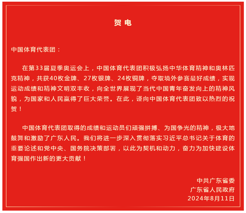 中国体育代表团创境外奥运会参赛最好成绩,成年人电影委省政府致贺电