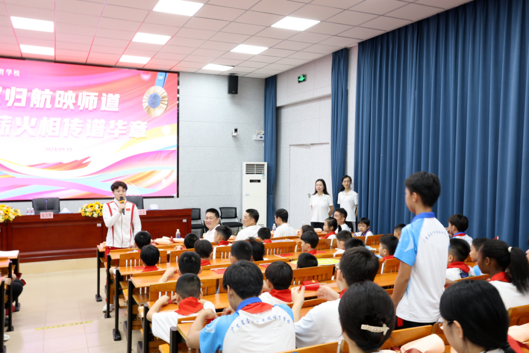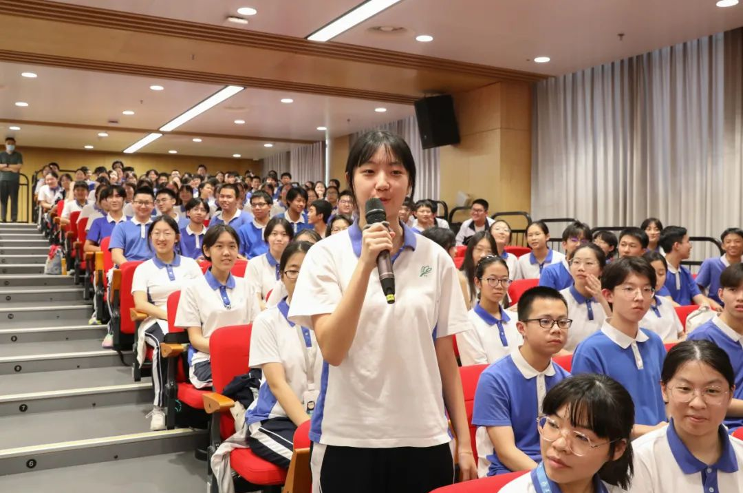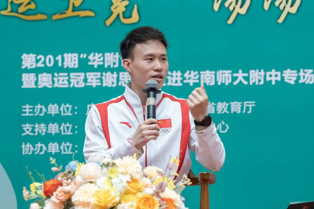 9月9日,巴黎奥运会跳水男子3米板冠军谢思埸来到华南师范大学附属中学,向学校师生分享他在跳水项目的训练经历,以及如何面对比赛压力、坚持梦想等。