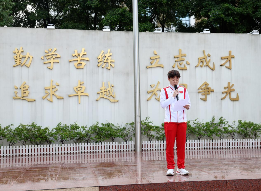 “竞技体育的胜利往往属于那些最坚韧不拔的人,在生活中也是如此,希望同学们能够勇敢地追求自己的梦想,不畏艰难,不畏失败。在追求梦想的同时,也希望同学们能够保持对学习和知识的渴望,知识是我们实现梦想的翅膀,它能够带我们飞得更高,看得更远,成功的路上没有捷径,只有坚持不懈地努力和自我不断地超越。”