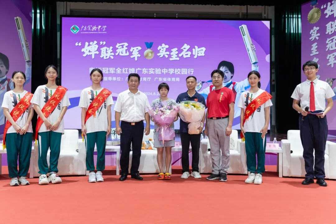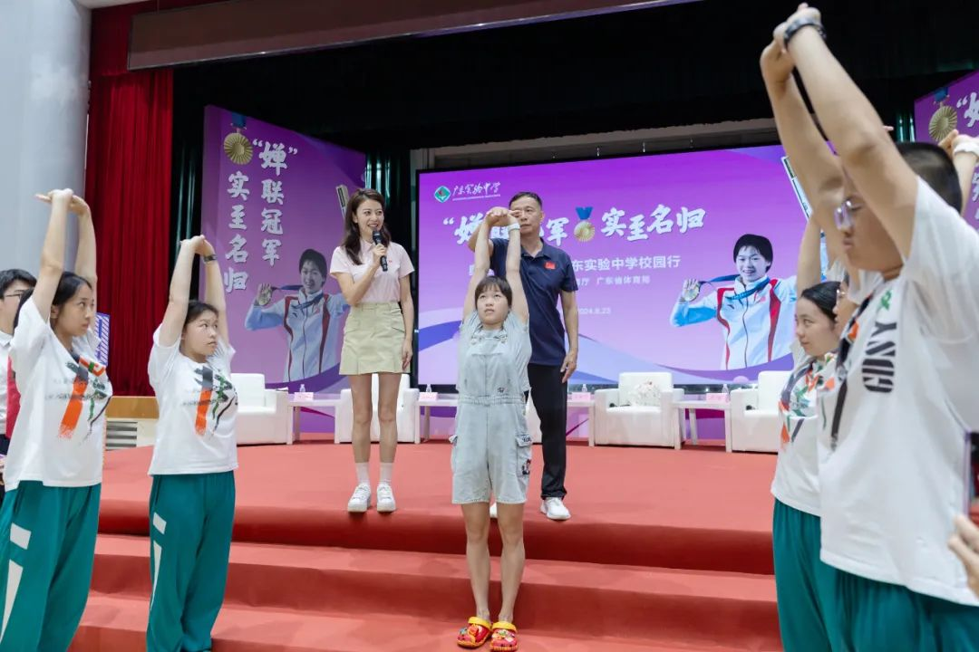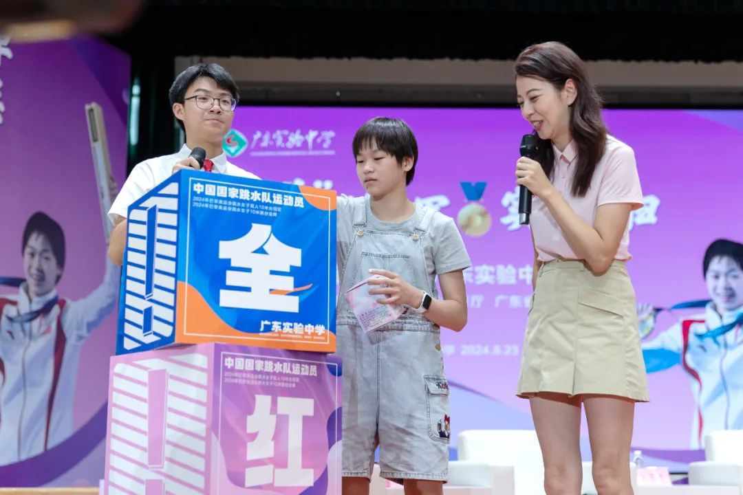 8月23日上午,全红婵及其教练何威仪,时隔三年再次来到广东实验中学(荔湾校区)体育馆,与同学们交流互动,共话成长,同筑梦想。