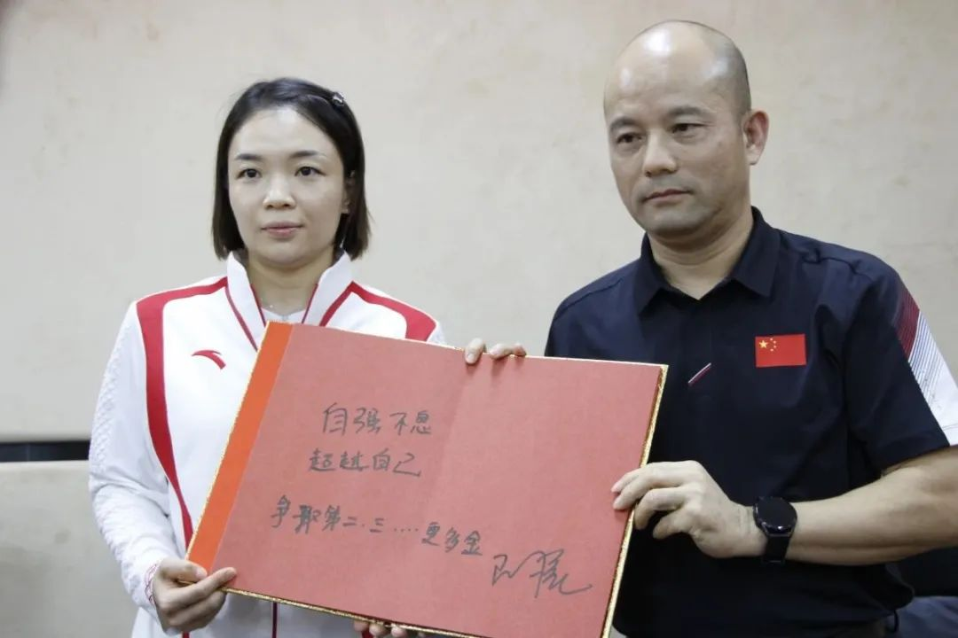 看着眼前一张张稚嫩的面孔,陈清晨亲手写下寄语:“不怕苦累,为梦想拼搏!”她鼓励学子们要保持热爱,找到羽毛球运动的乐趣,努力奔赴自己的梦想,争取站上更高的领奖台。